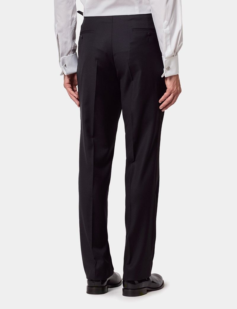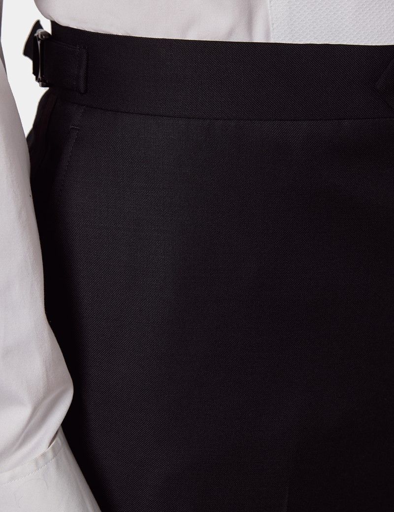 These black classic dinner suit pants feature a hook and eye fastening, side and rear pockets and smart waist adjusters. To ensure the best fit, you can choose suit pants that are unfinished and require alteration. This allows you to have your pants tailored to the precise length you need.