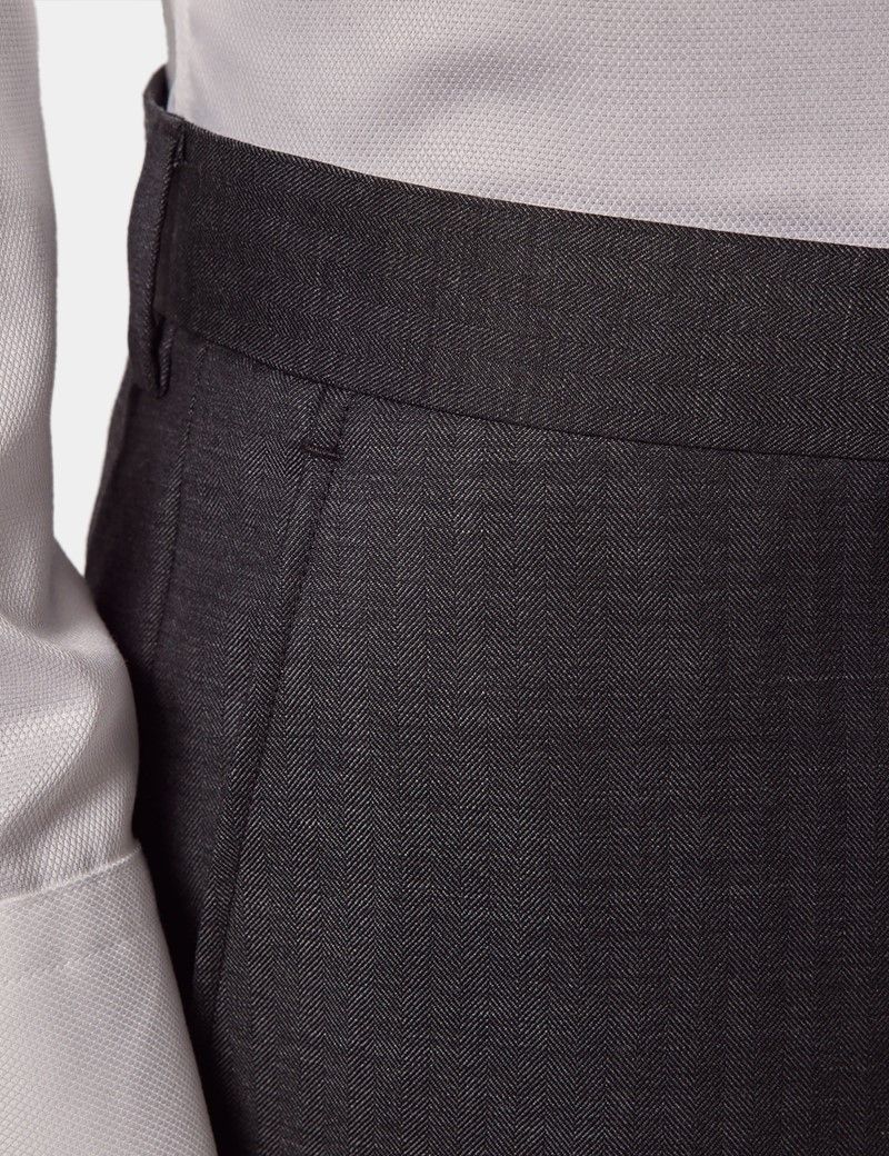 A sophisticated choice, these charcoal slim fit pants are made from the finest wool. Woven in a herringbone style for subtle flair, the luxurious wool creates a delicate textured effect. They feature a hook and eye fastening and are half-lined to the knee. To ensure the best fit, you can choose suit pants that are unfinished and require alteration. This allows you to have your pants tailored to the precise length you need. Bring your pants to any of our stores for free alterations.