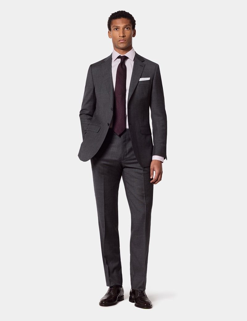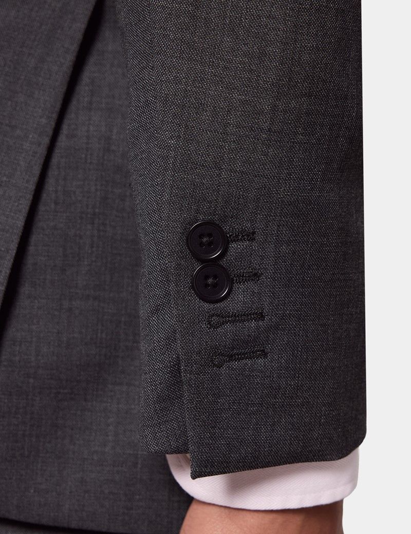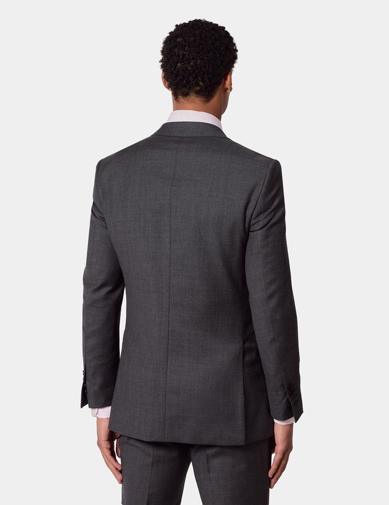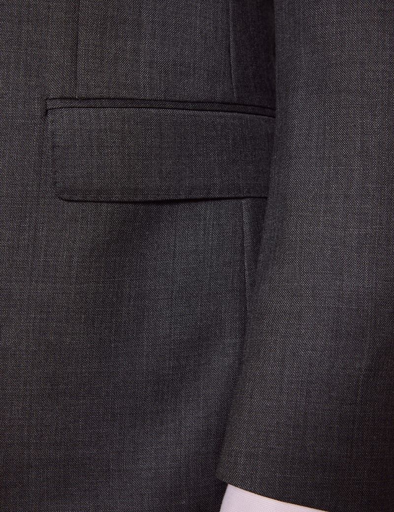 This exquisite charcoal slim fit suit jacket is made from the finest super 100s pure wool. The lined, single breasted jacket is designed with a classic notched lapel with two buttons. It has a welt breast pocket and two straight pockets on either side with flaps. The double vents facilitate freedom of movement.