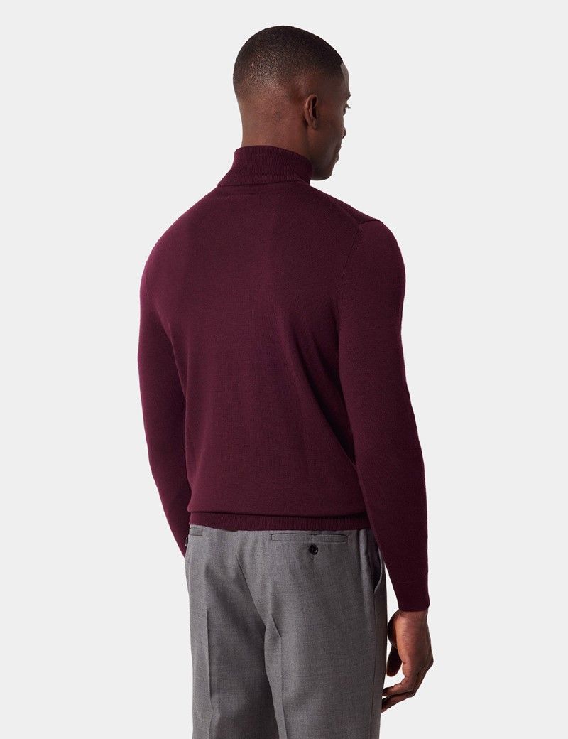 Made from smooth merino wool, this luxurious roll-neck sweater is inspired by the 60s mod style. This claret smart sweater is designed with a ribbed turtleneck, ribbed cuffs and a ribbed hem. Wear yours underneath a blazer – it will make a suave alternative to a shirt for autumn/ winter.