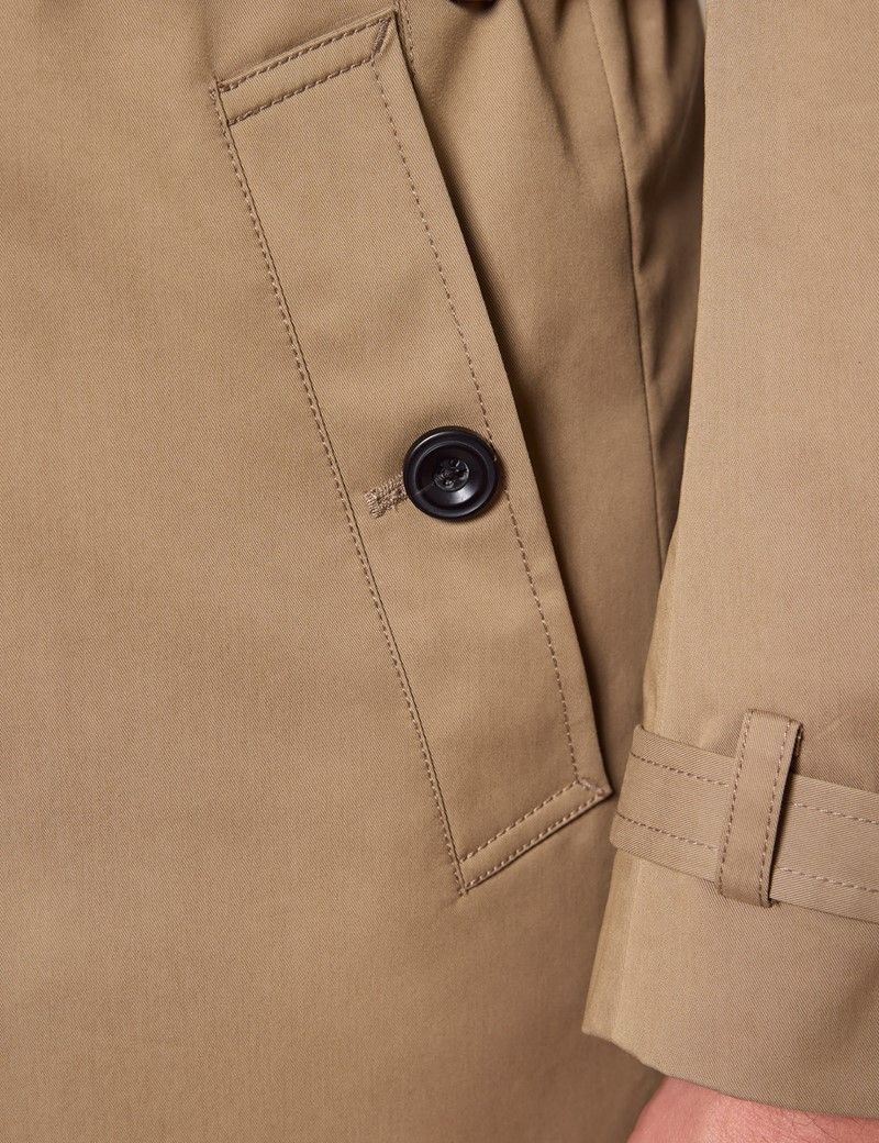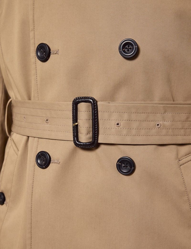 The transitional wardrobe must-have , this signature khaki beige trench coat is the perfect piece to see you through all seasons in style. It is crafted from a luxurious cotton blend that is rain resistant while retaining a breathable quality. Designed with classic trench coat details for a traditional look featuring adjustable buckle cuffs, back vent and soft check pattern lining.