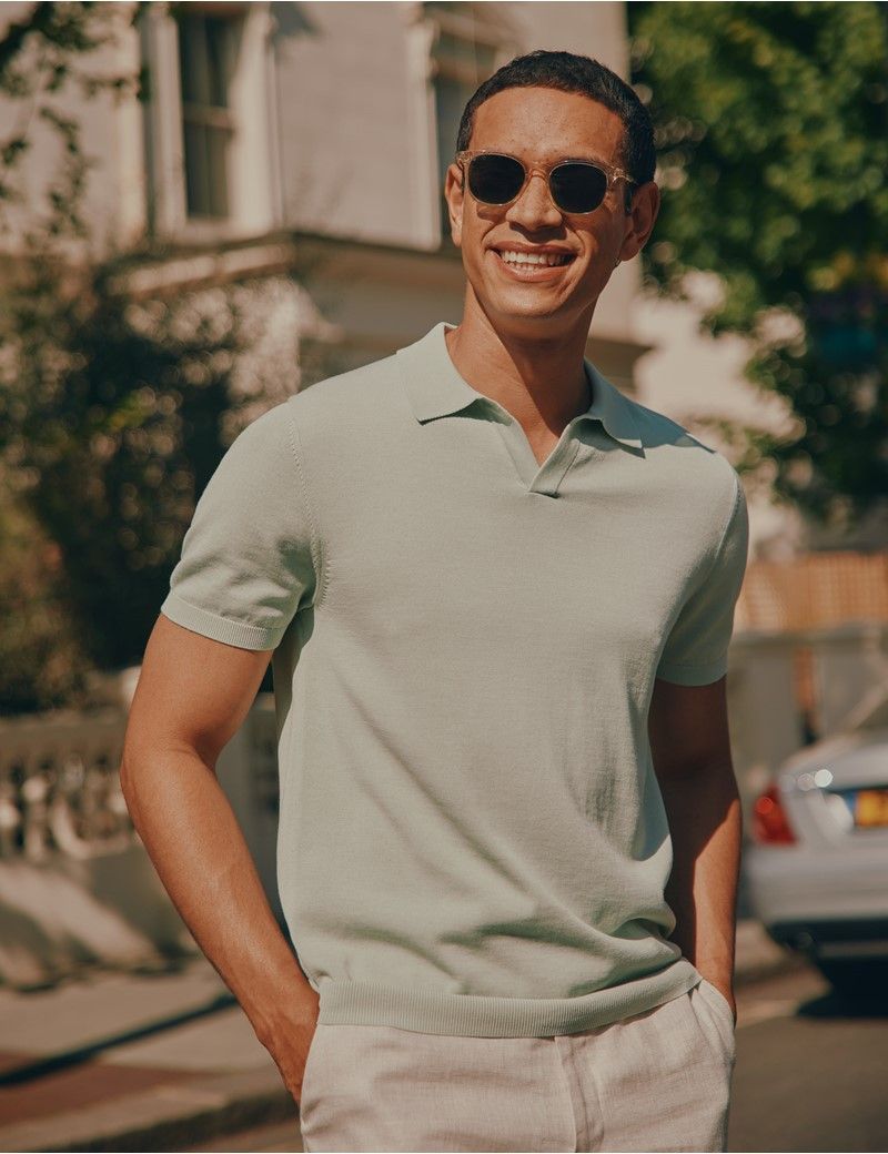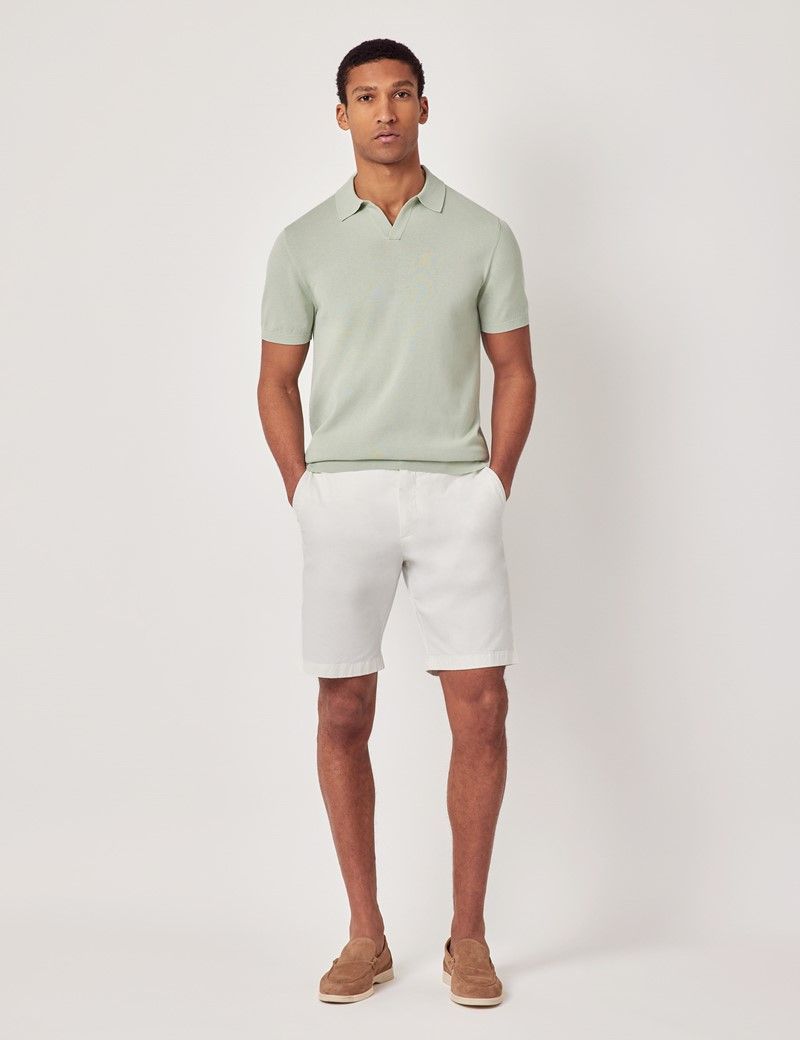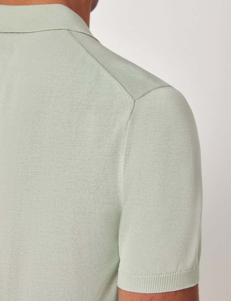 Adding effortless refinement to your aesthetic, this light green polo shirt is made from luxurious cotton for an increased sheen and a crisp, smooth handle. The open neck collar and short sleeves make for breathable wear in any weather. The ribbed detailing at the cuffs and hemline provide a flattering shape and stretch with every wear. Perfect for alfresco dining or smart-casual summer events, style with cotton chinos or your favourite denim all season.