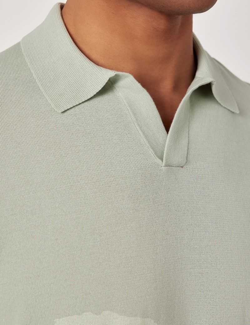Slim Fit Light Green Open Collar Knitted Polo Shirt