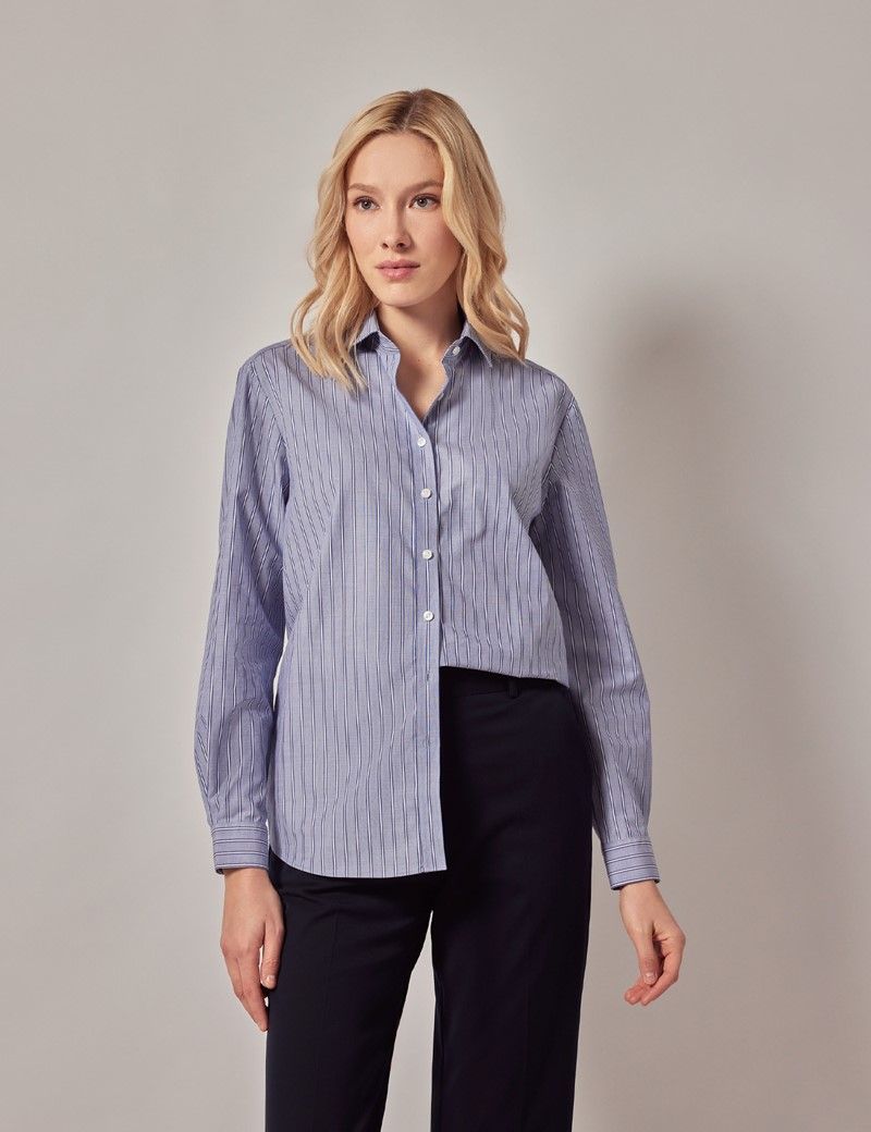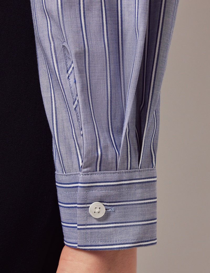 An essential staple for any wardrobe, this navy and white stripe shirt is a reliable choice. The sophisticated pointed collar and 100% high-quality cotton shirt is not only soft and breathable but also durable, ensuring it will remain a favourite for seasons to come. Cut in a relaxed yet stylish fit, it allows for ease of movement and all-day comfort. Pair it with jeans for a laid-back look or dress it up with tailoring for a more refined style.