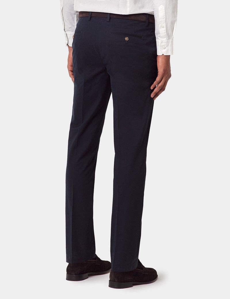 Versatile and practical, our navy chinos exude a timeless smart casual style that you will always want to wear. They are crafted from a high-percentage cotton fabric for softness and elastane for comfort. The fabric boasts a soft, peached texture for a sueded touch with luxurious appeal. The flat front makes for a sleek finish, the perfect base to any outfit.