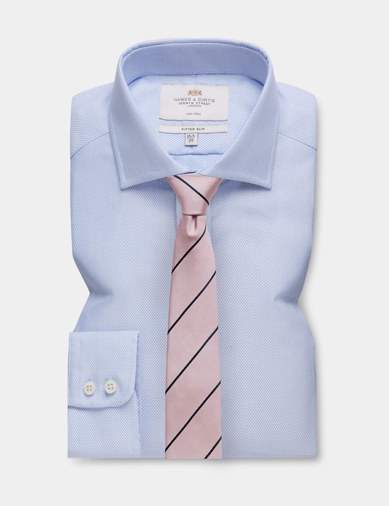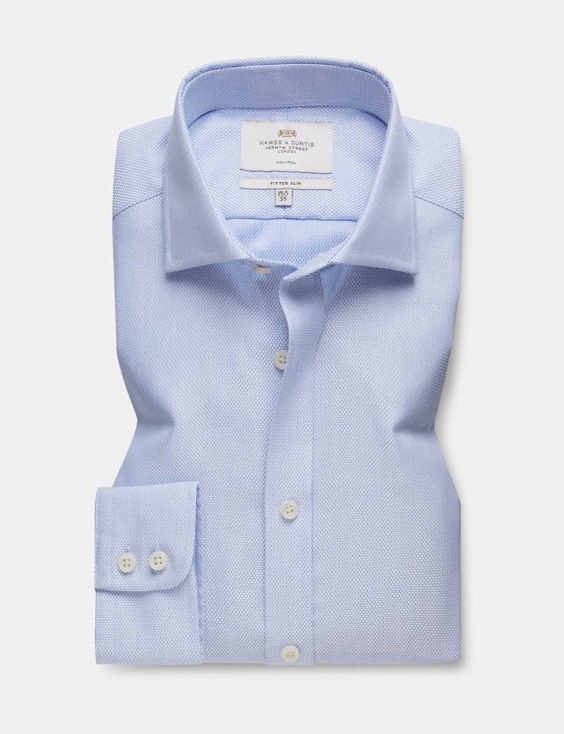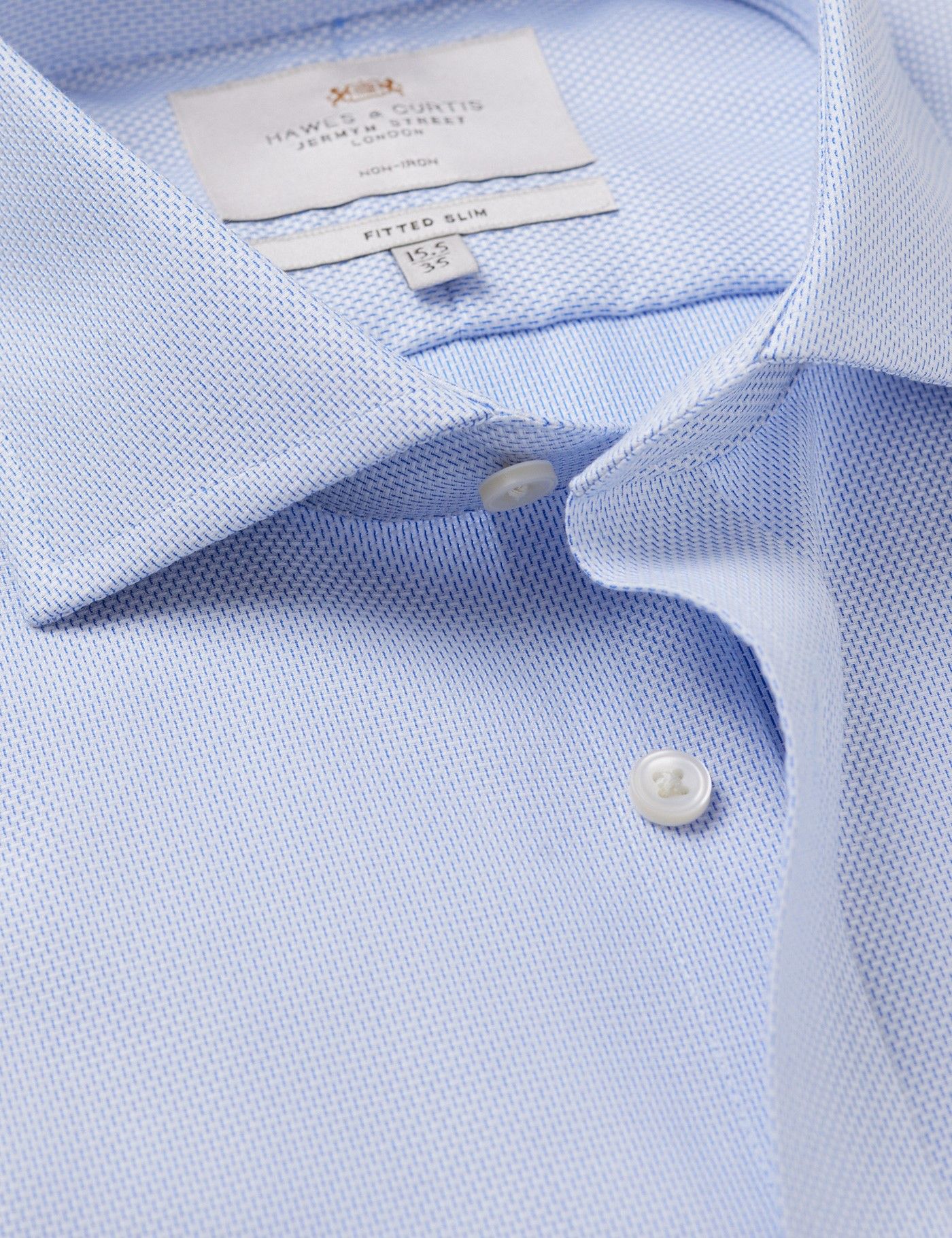 Fitted Slim Blue & White Textured Weave Non-Iron Shirt