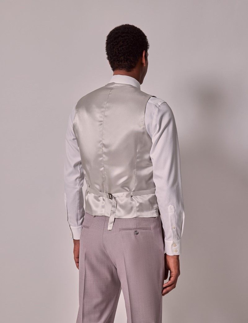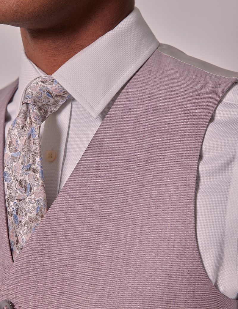 Crafted with meticulous attention to detail, the pink sharkskin vest exudes sophistication and timeless elegance. Woven in a smooth sharkskin weave, you can anticipate an undeniably sleek appearance with a premium feel for a classic Italian look. The lined, single breasted vest is designed with five mock horn button fastenings, two pockets and a waist adjuster to the reverse. This vest has a tailored silhouette for a modern style that will flatter everyone.